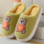 Lovely Cartoon Bear Woolen Slippers For Women Winter Indoor Thick-soled Non-slip Home Slippers Breathable Warm Bedroom Floor House Shoes