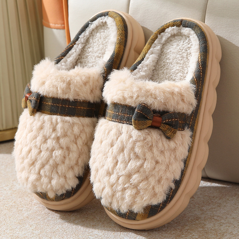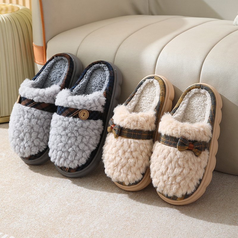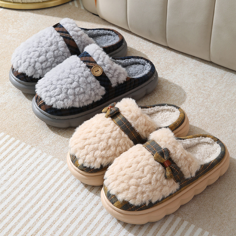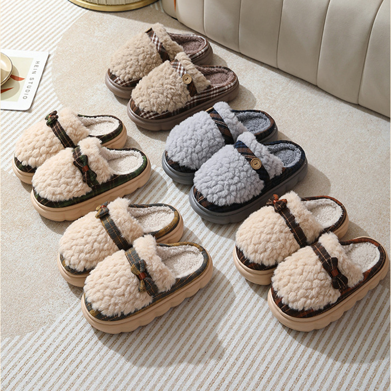 January 18, 2024Winter Plush Slippers With Bow Button Design Indoor Non-slip Thick-soled Fur Home Slipper Fluffy Slides Household Warm Hose Shoes For Women